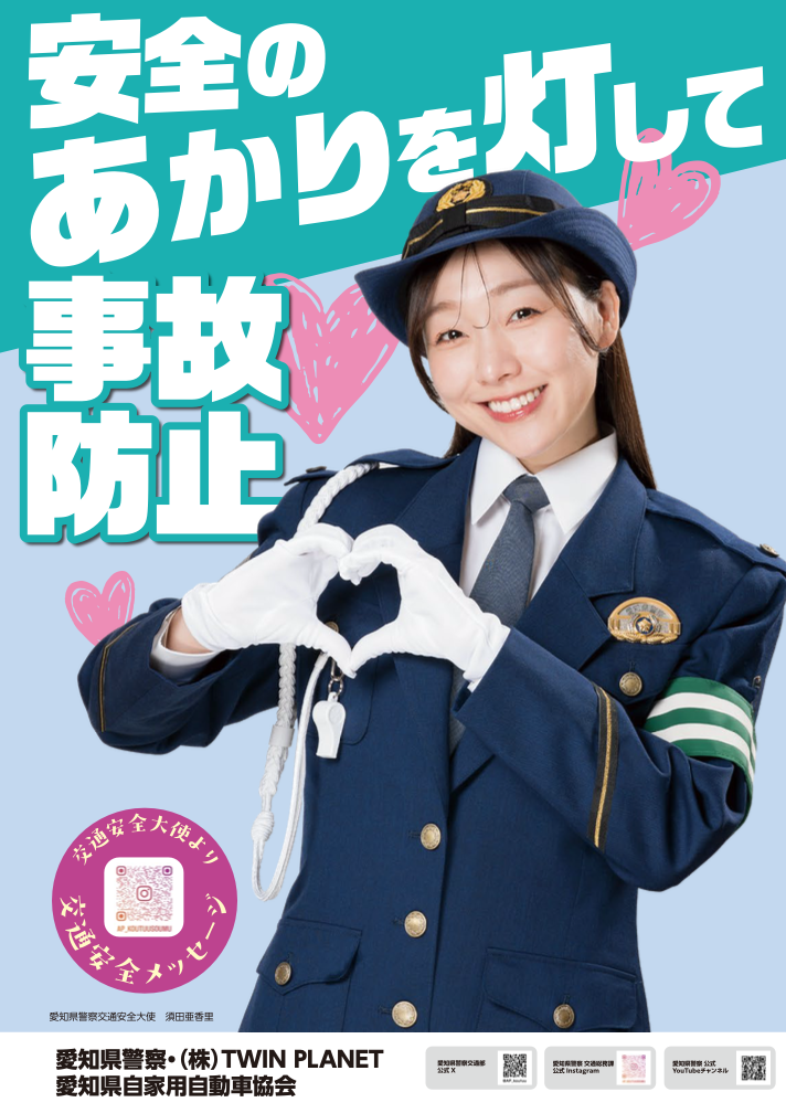愛知県警察本部交通総務課の協力を得て、交通事故防止を呼び掛ける交通安全ポスターを作成しました。